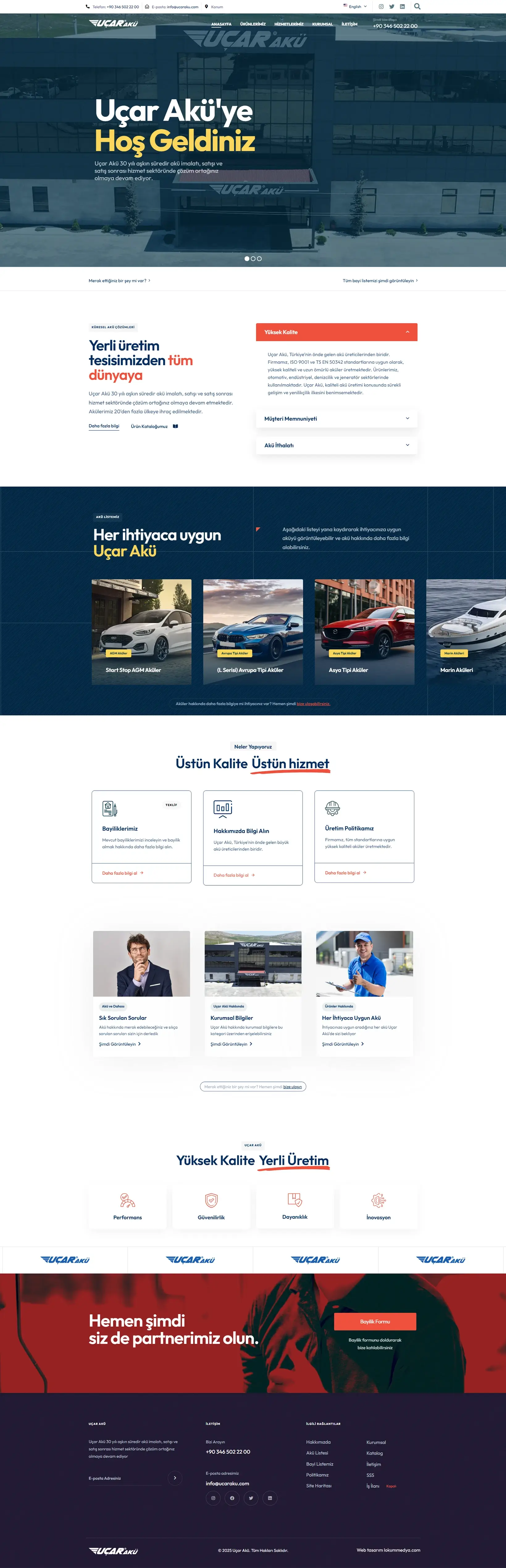 Uçar Akü isimli akü firması için oluşturduğumuz kurumsal web sitesi tasarımı